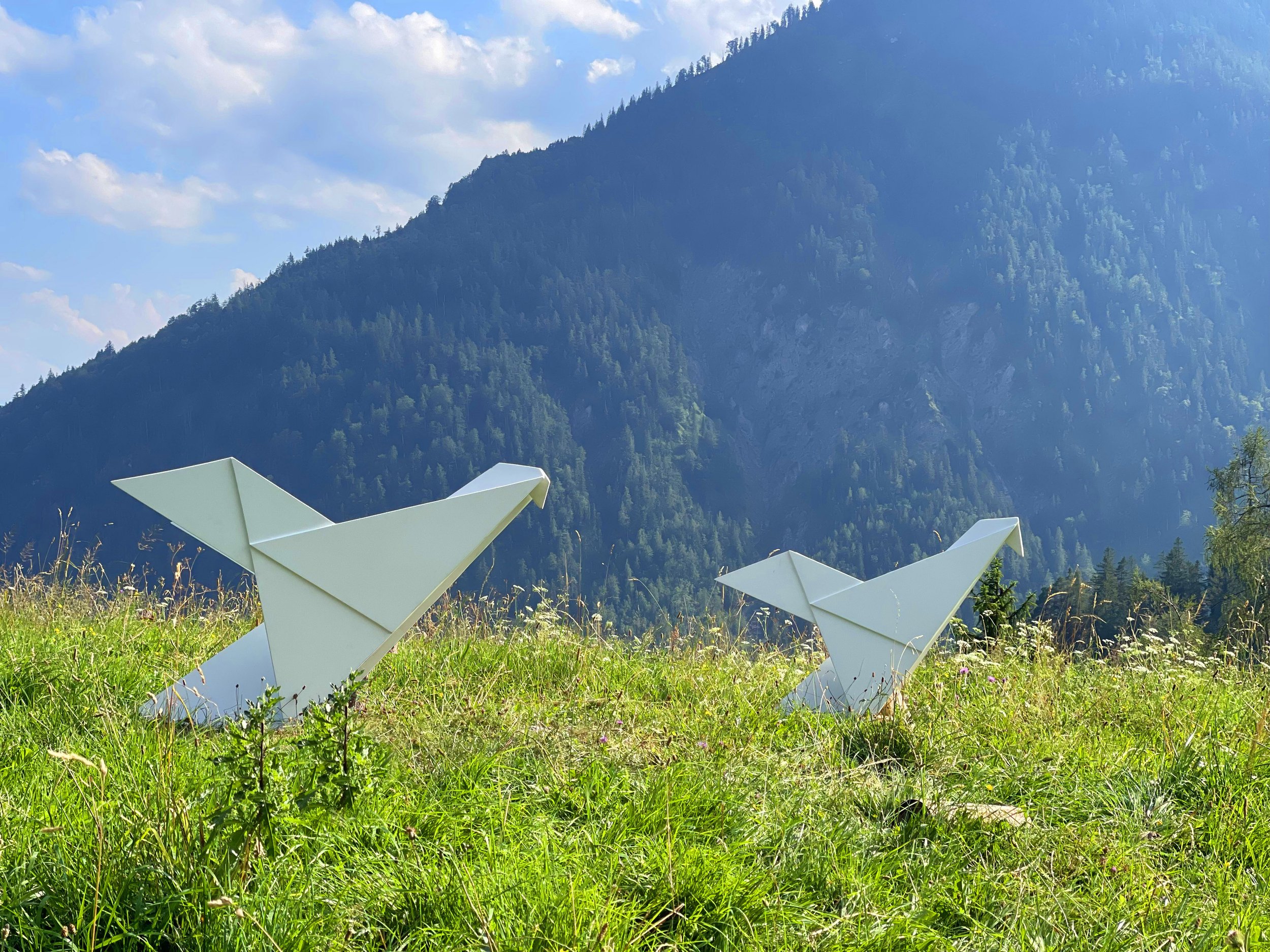 FALLEN DOVES is a sculpture series in the spirit of the immensely successful installation LES COLOMBES, which has been travelling the world since 2016. The blow-up sculptures are based on origami doves, the key element of LES COLOMBES. It is an art-for-peace project, a message, and a reference point in a world of disruption and uncertainty. And it is a multi-sensual experience in a world dominated by technology.